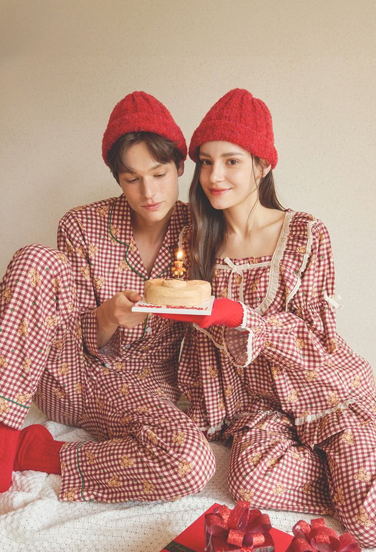 여성 홀리체크 코튼 긴소매 스퀘어넥 원피스 잠옷