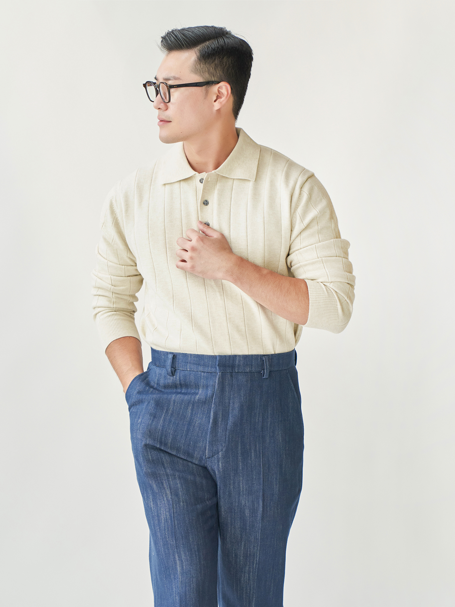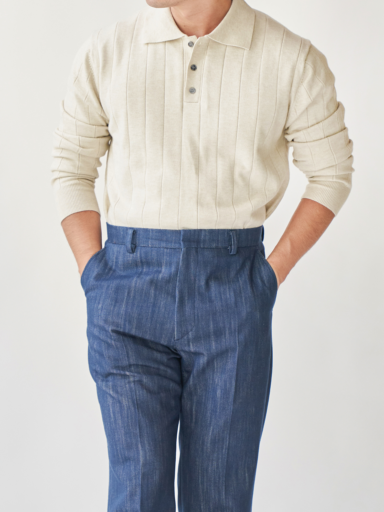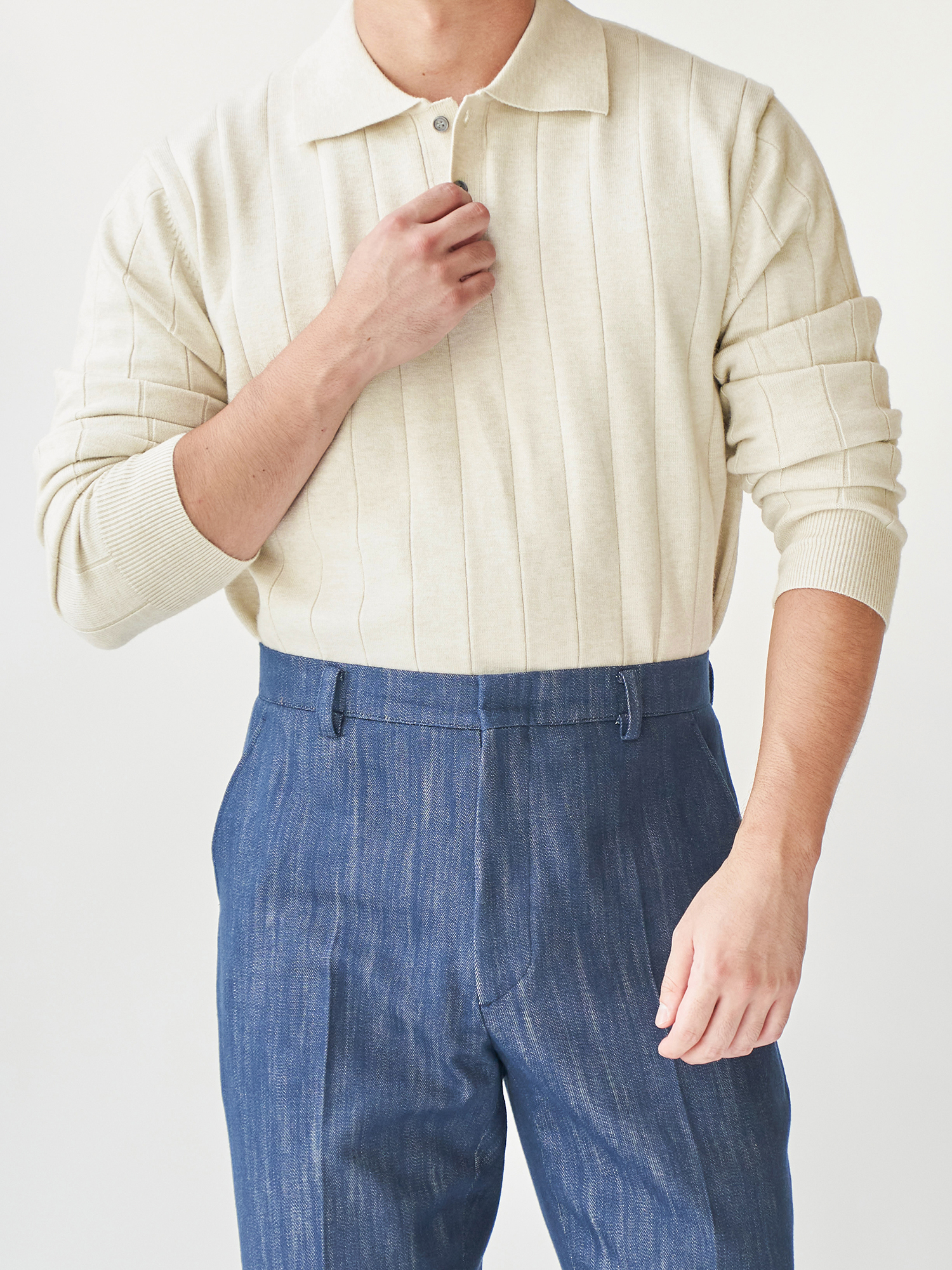 - 립 골지 패턴- 도톰한 카라깃
