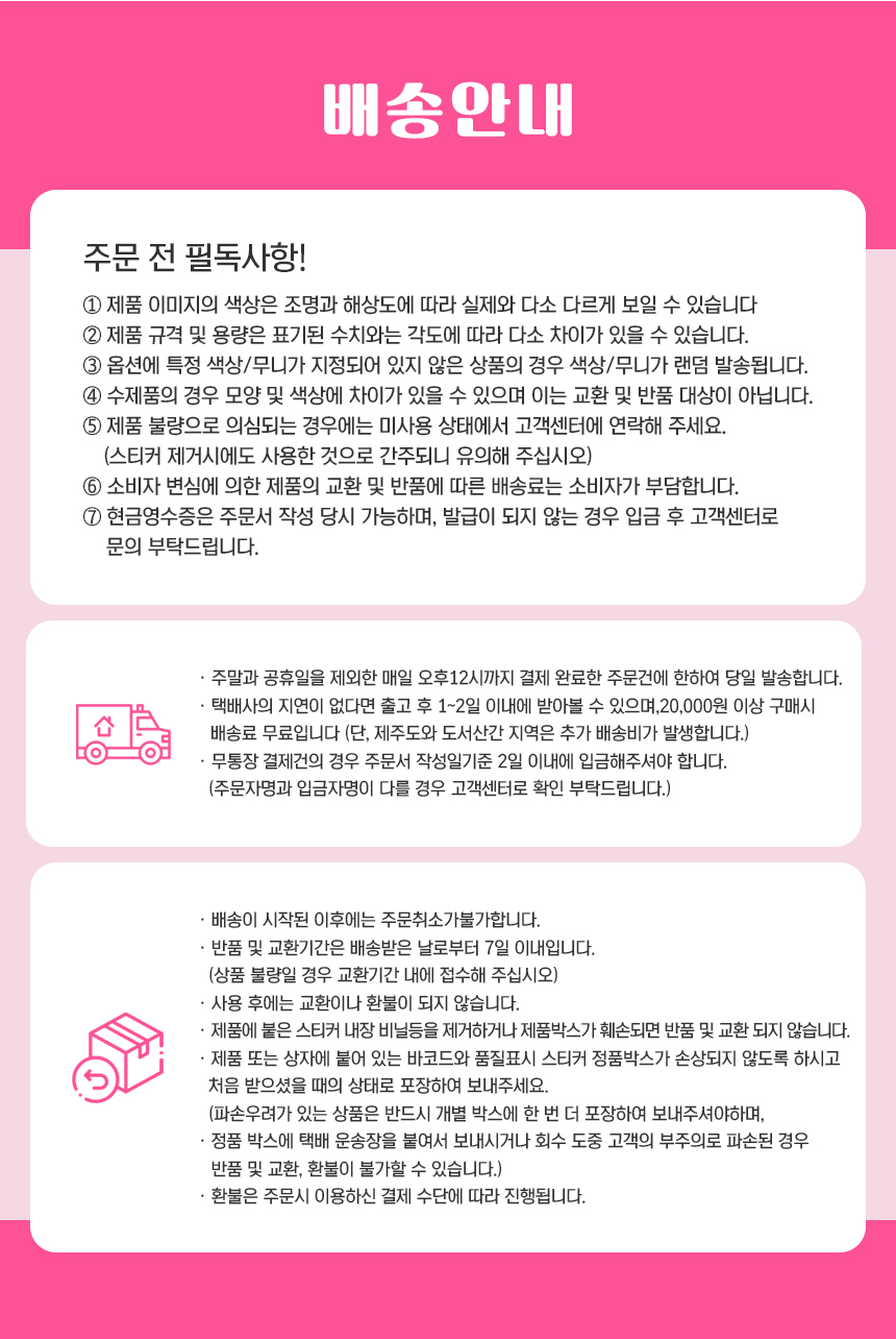 배송, 교환 및 반품