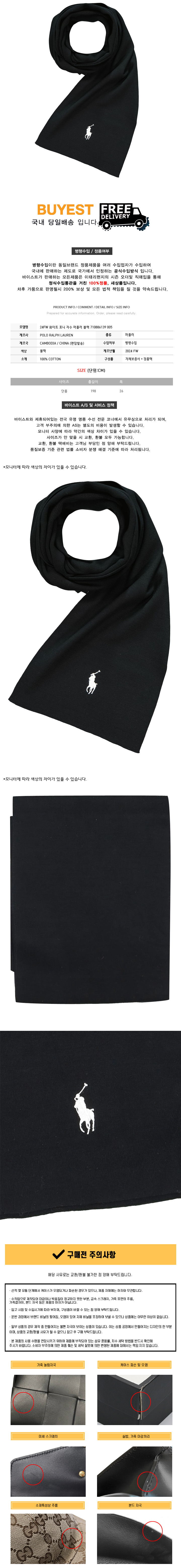 [랄프로렌] 24FW 화이트 포니 자수 머플러 블랙 710886139 005
