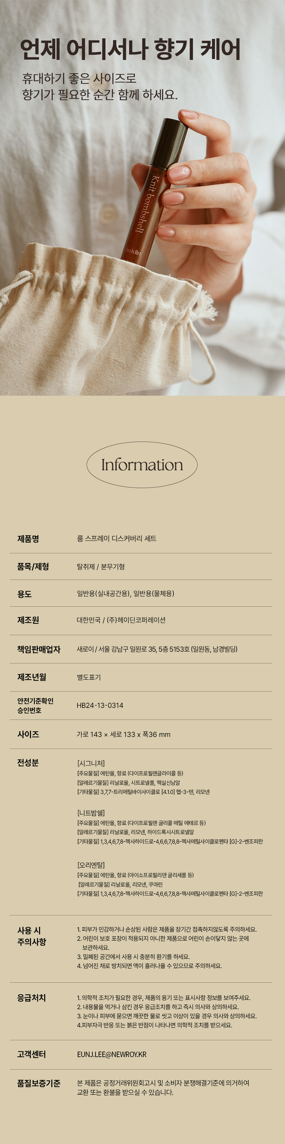 | 품명 및 모델명 | 룸 스프레이 3종 선물세트 디스커버리 |