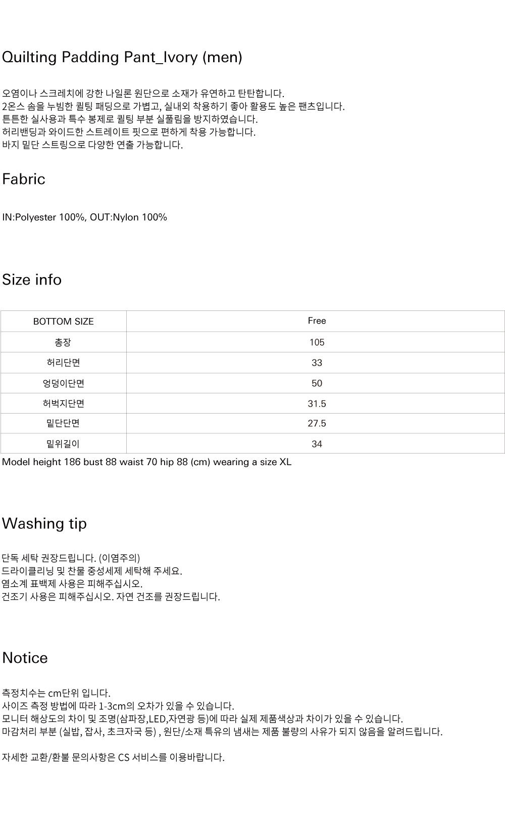 | 세탁방법 및 취급시 주의사항 | 상품상세정보 참고 |