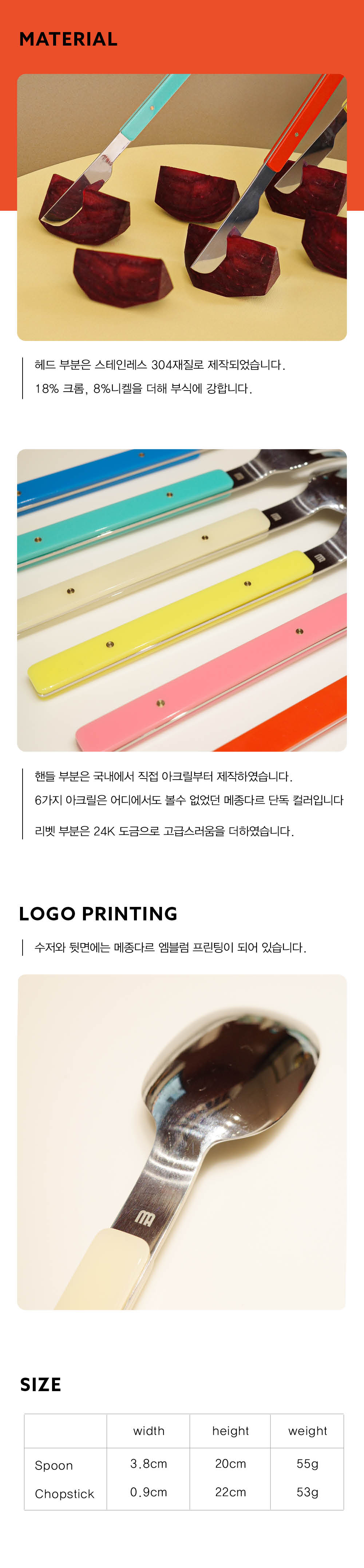 | 크기 | Spoon 3.8cmx20cm, Chostick0.9cm*2x22cm |