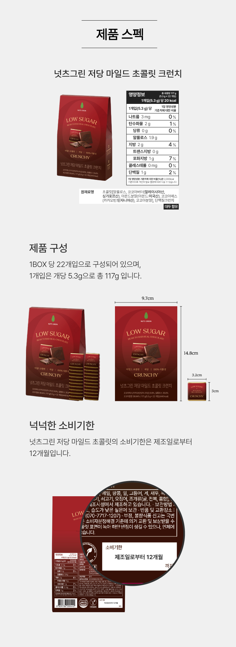 | 제품명 | 넛츠그린 저당 마일드 초콜릿 크런치 22개입 |