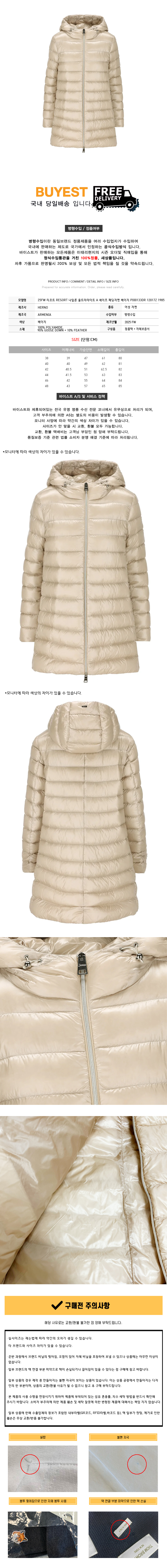 | 제품 소재 | 겉감 나일론 100% 충전재 솜털 90%, 깃털 10% |
