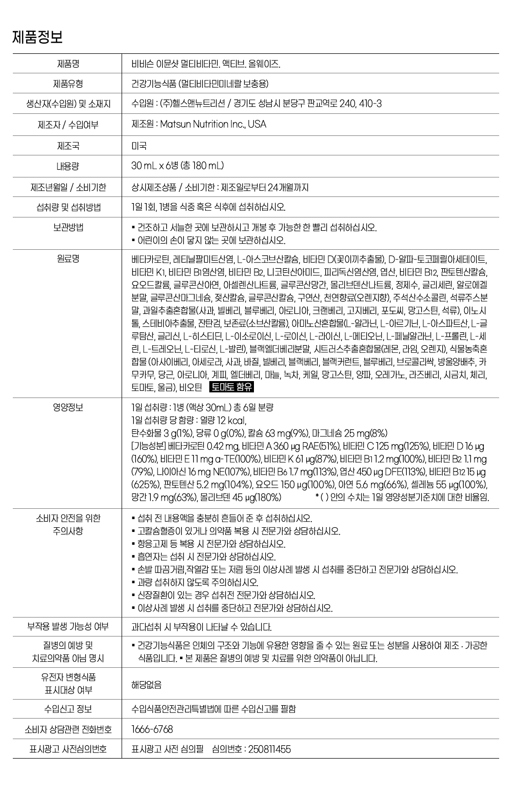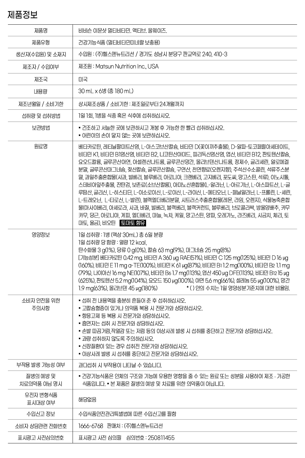 (주)헬스앤뉴트리션 (차민식, 120-86-34040, 제 2015-경기성남-1125 호)