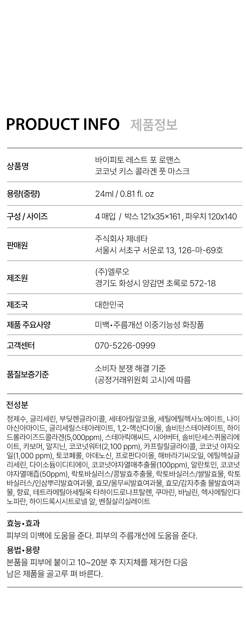 | 용량 또는 중량 | 상세페이지 참조 |