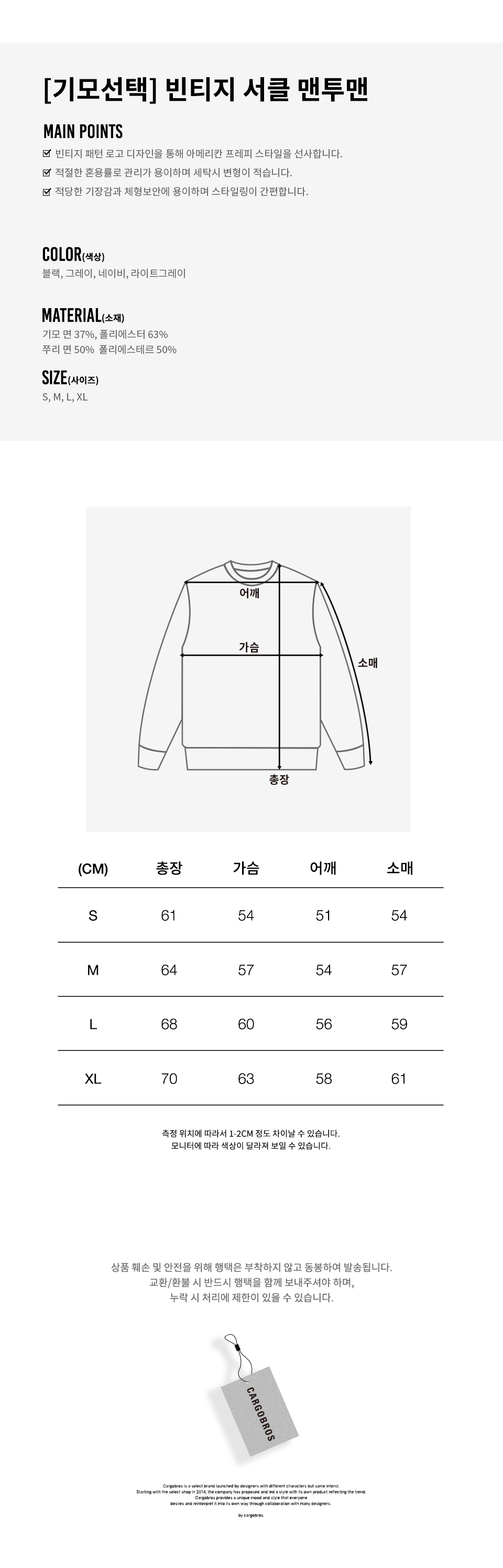 | 색상 | 쭈리 면 50% 폴리에스테르 50% |