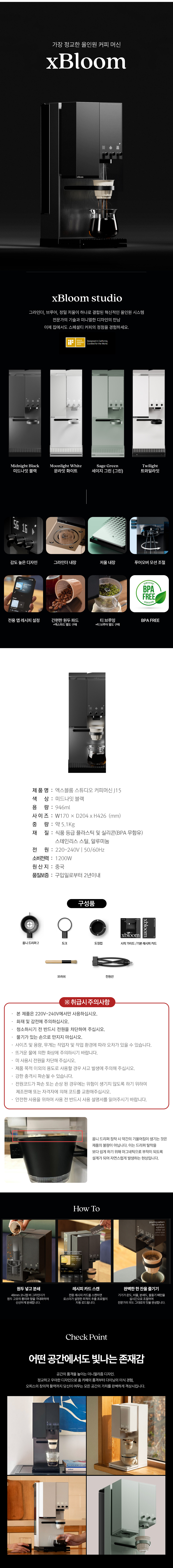 | 품명 및 모델명 | 엑스블룸 스튜디오 커피 머신 J15 - 미드나잇 블랙 |