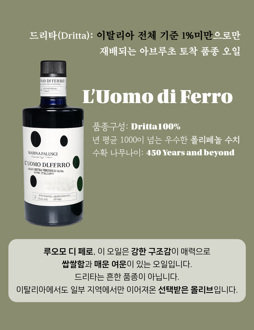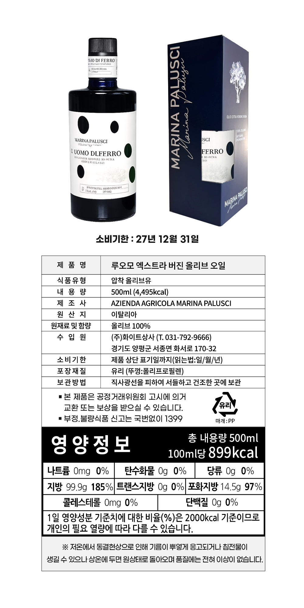 | 제품명 | 마리나팔루시 루오모 엑스트라버진 올리브 오일 500ml |