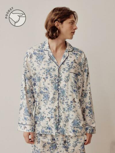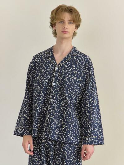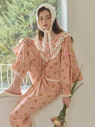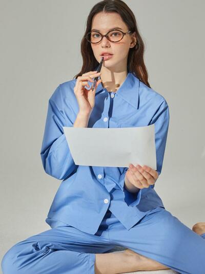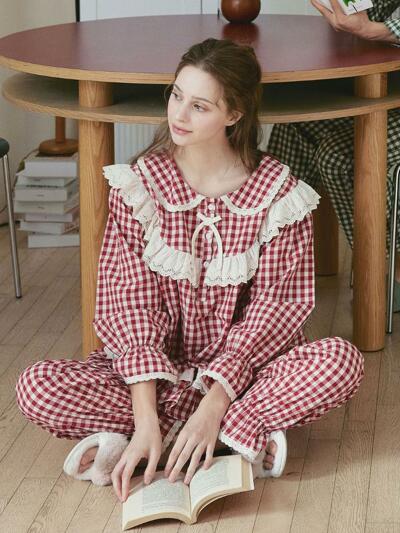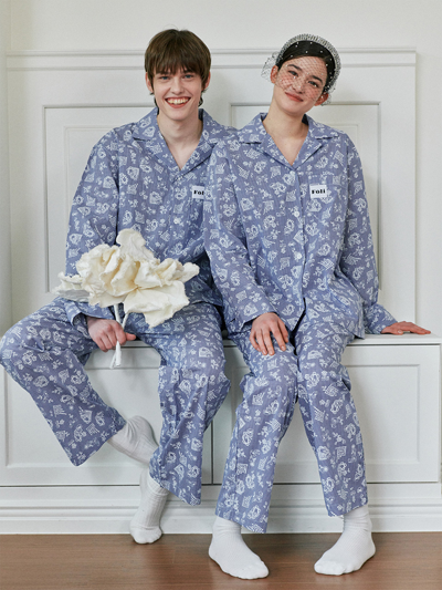 (유니섹스) 로맨틱 깅엄 긴팔/긴바지 파자마세트, 블루