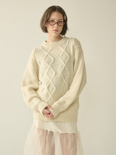 WOOL KNIT MUFFLER&GLOVES SET_ivory