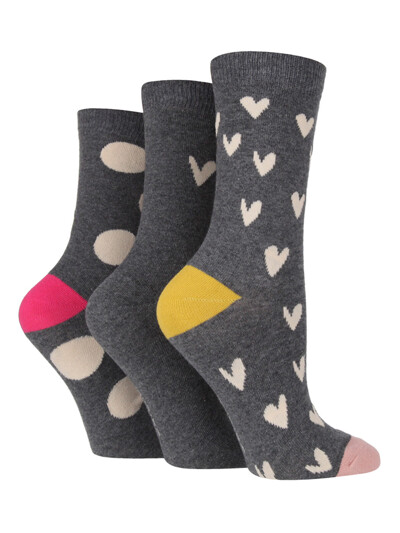 여성 그레이 하트&도트 양말 세트