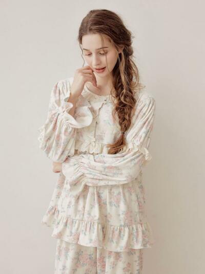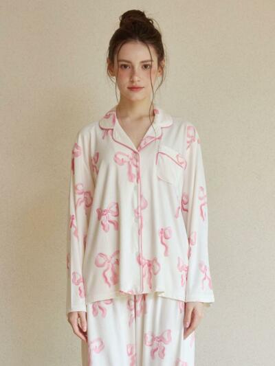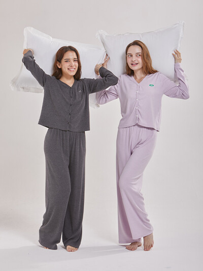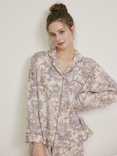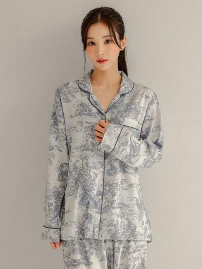 여성 쟈르뎅 모달코튼 긴소매 카라 투피스 잠옷