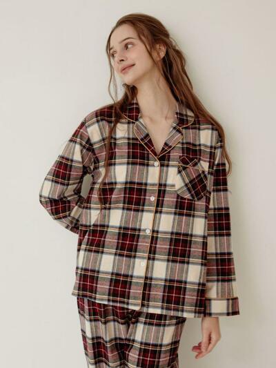 여성 발렌타인체크 긴소매 카라 투피스 잠옷