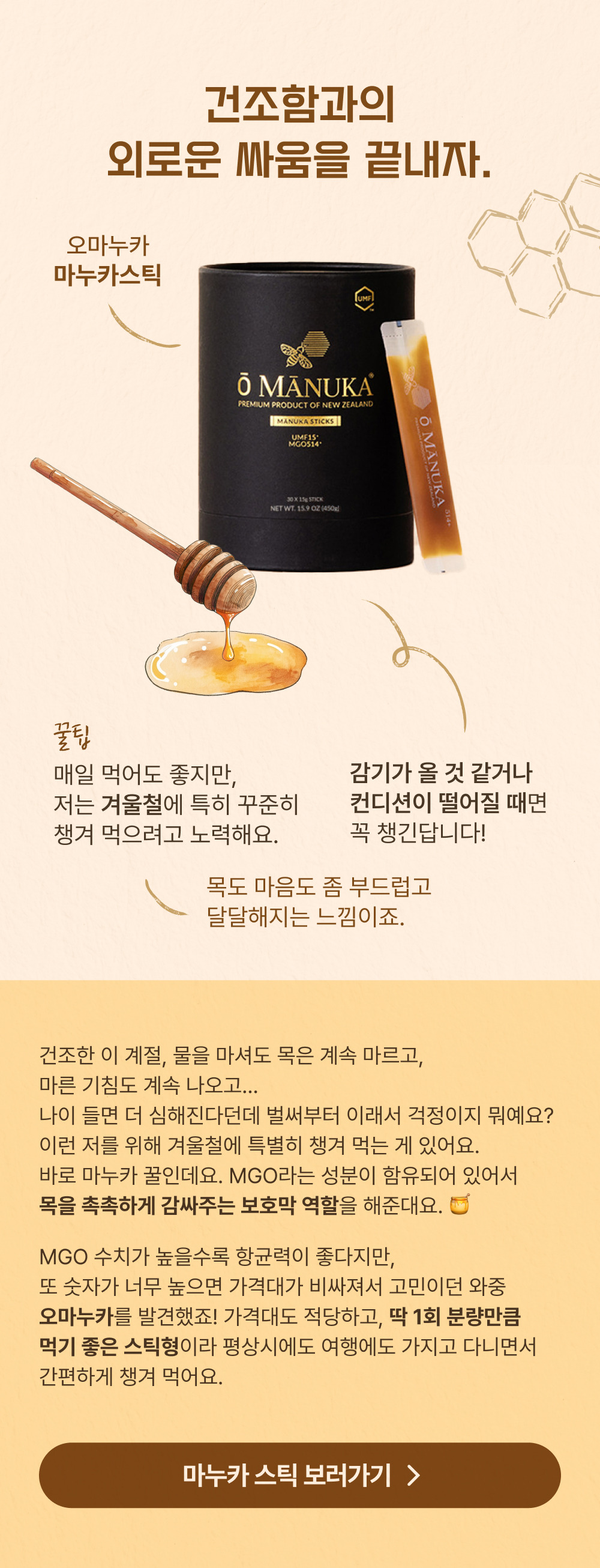오마누카 마누카꿀스틱 UMF 10+ 패키지
