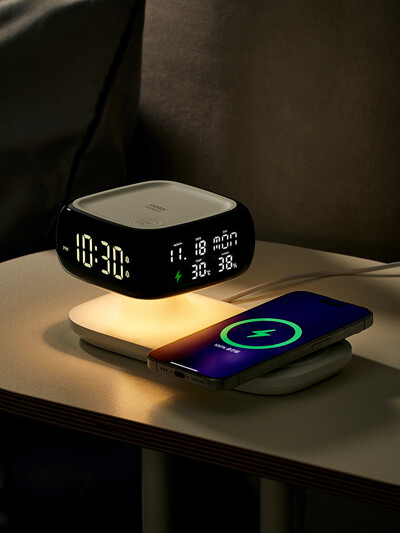 OWC시계 마노 15W 고속무선충전 무드등 알람 탁상시계